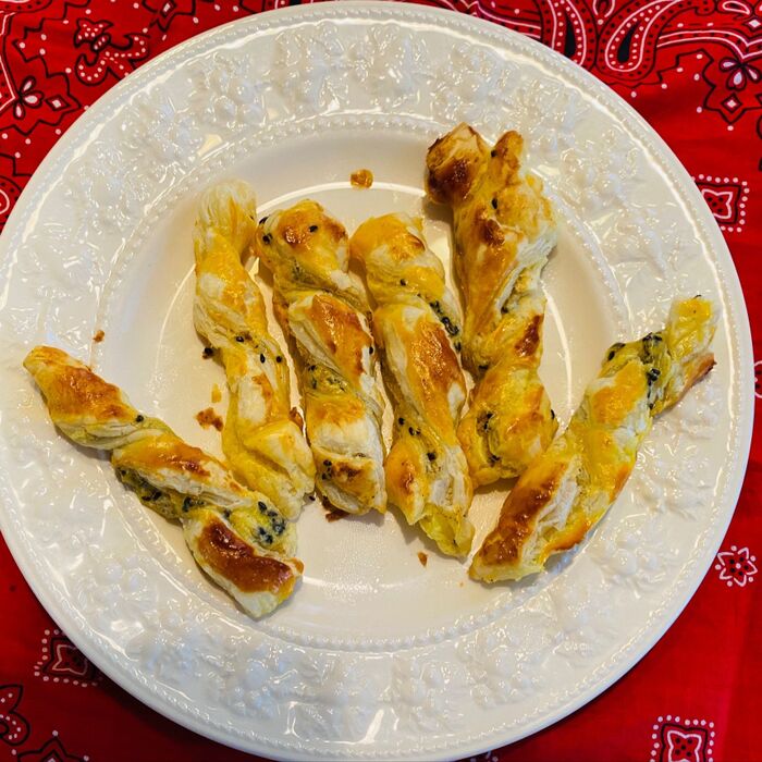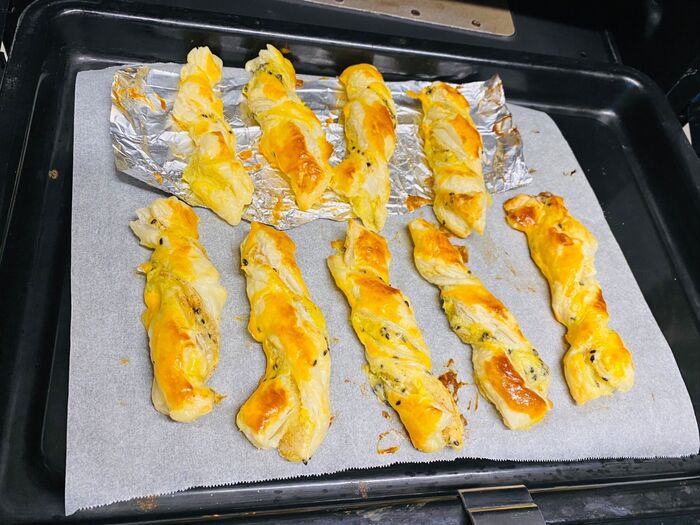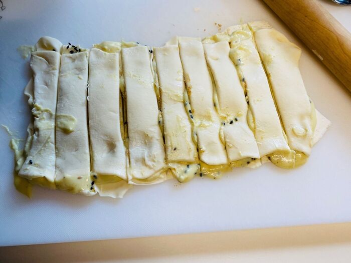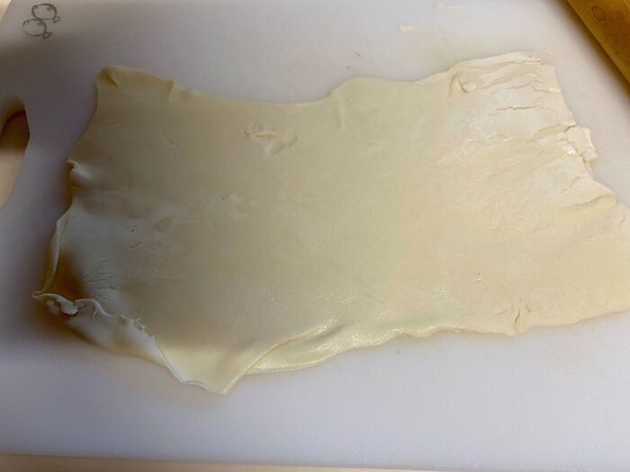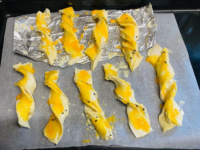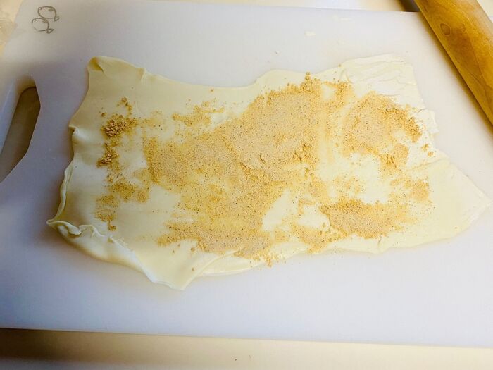 以前冷凍庫に、まとめて作っておいたパイ生地を使いました。