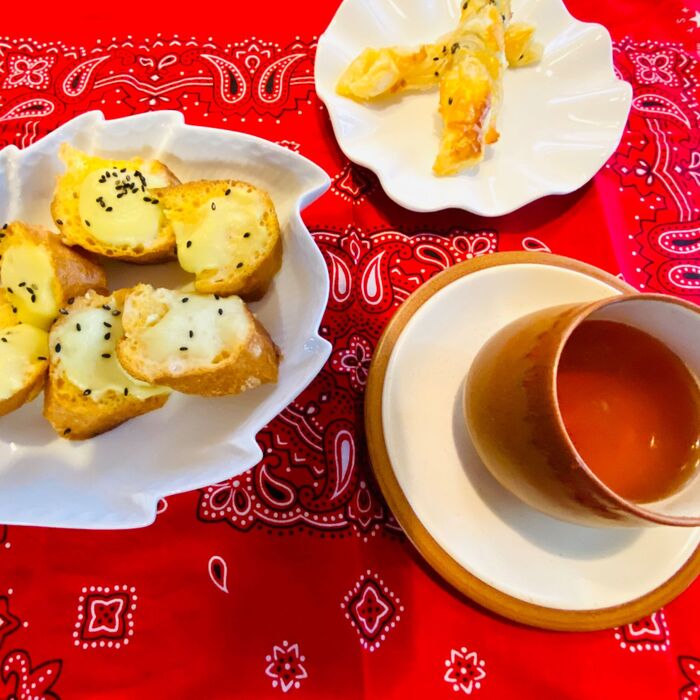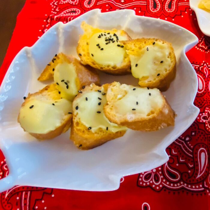 艶出しに使った卵が余ったので、冷蔵庫にあったパンを浸しました。