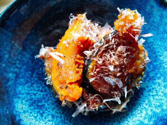 2.かぼちゃをフライパンに並べAを全体にふりかけて30分ほど味を馴染ませる