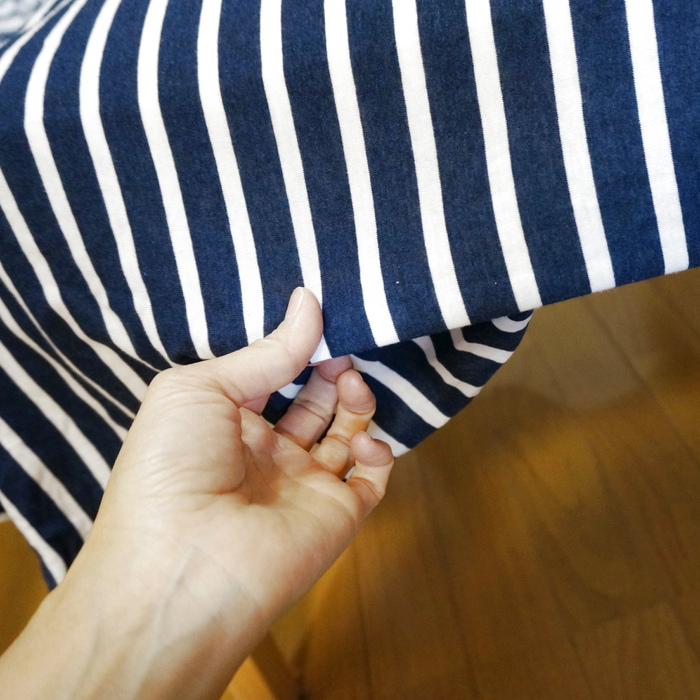 伸びる生地で、下にくる部分は太めのゴムがついています。