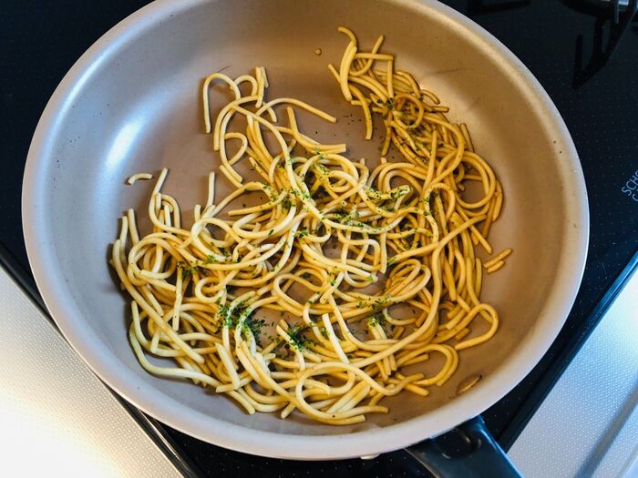 ・焼きそば麺やちゃんぽん麺でもパスタと同様の味付けにしてしまってOKです。味付けのバリエーションは無限大です。