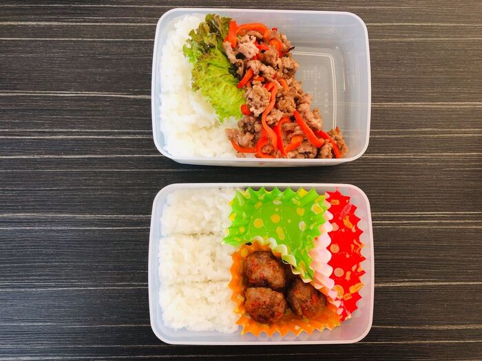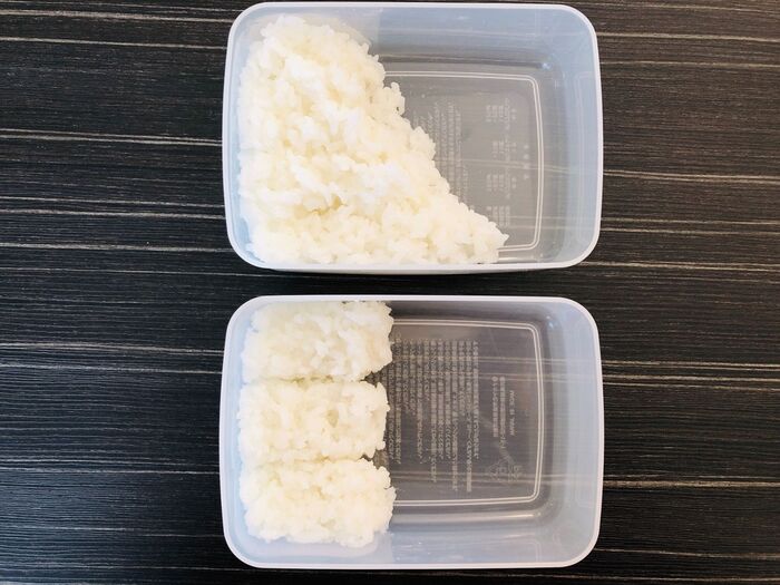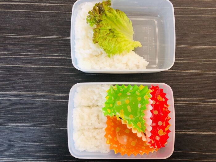 今回は大人も子供も同じお弁当箱に詰めたいと思います。子供は詰める深さで量を挑戦すればOKです。
