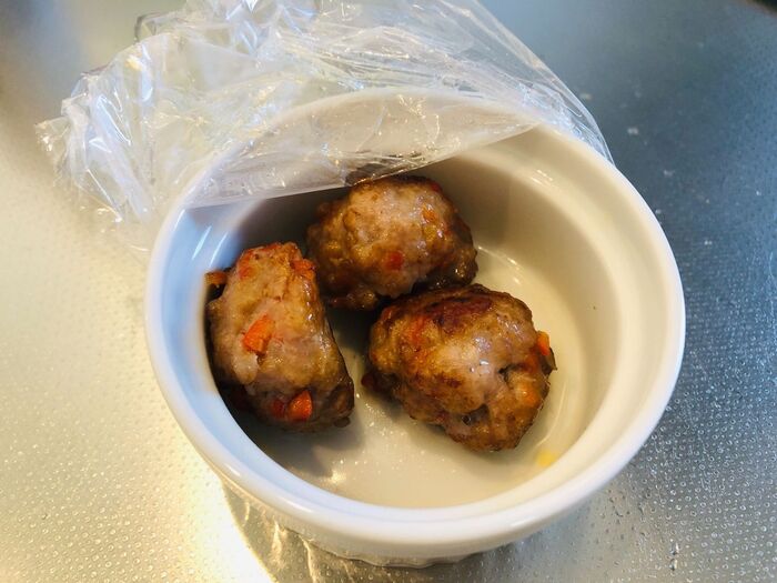 バーグは中まで火を通っているか分かりにくいので、私の場合は小さめの耐熱皿に入れラップをかけてレンジ600wで30〜40秒ほど加熱しています。