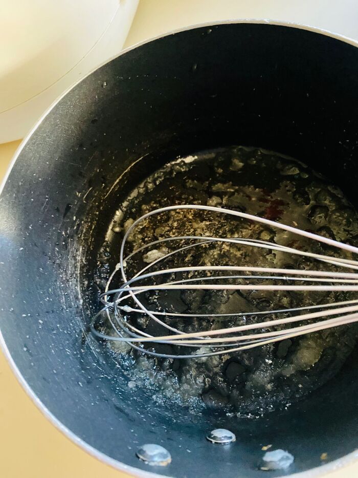 チーズ、ゼラチンがよく溶けたら火から下ろします。