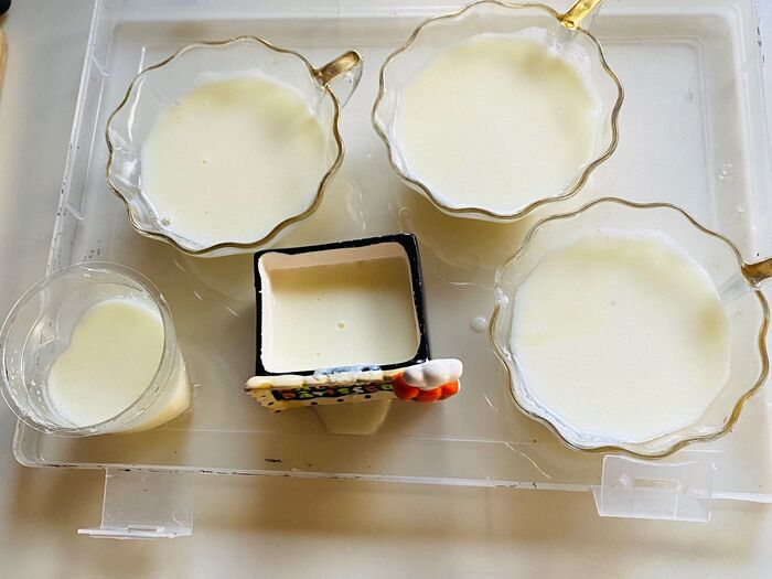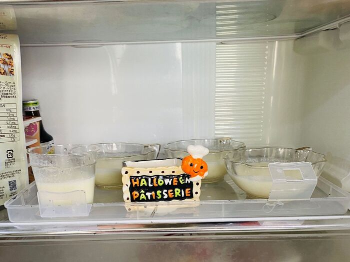 トレーごと冷蔵庫に入れ、冷や固めます。