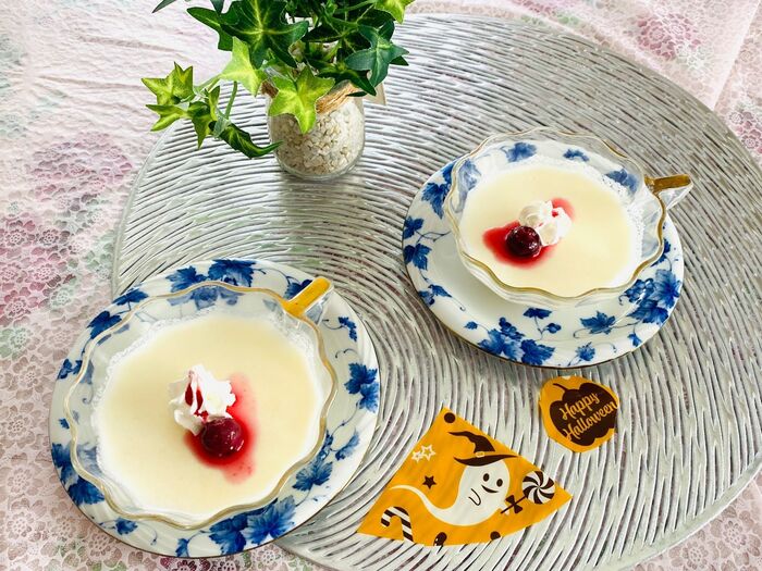 ソーサーに乗せ、ホイップクリームなどで、デコレーションします。