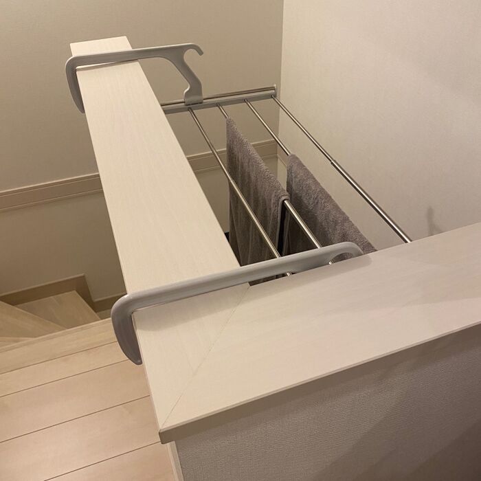 階段の上部に吊るす事になるので、日中干されていない時に気になりません。