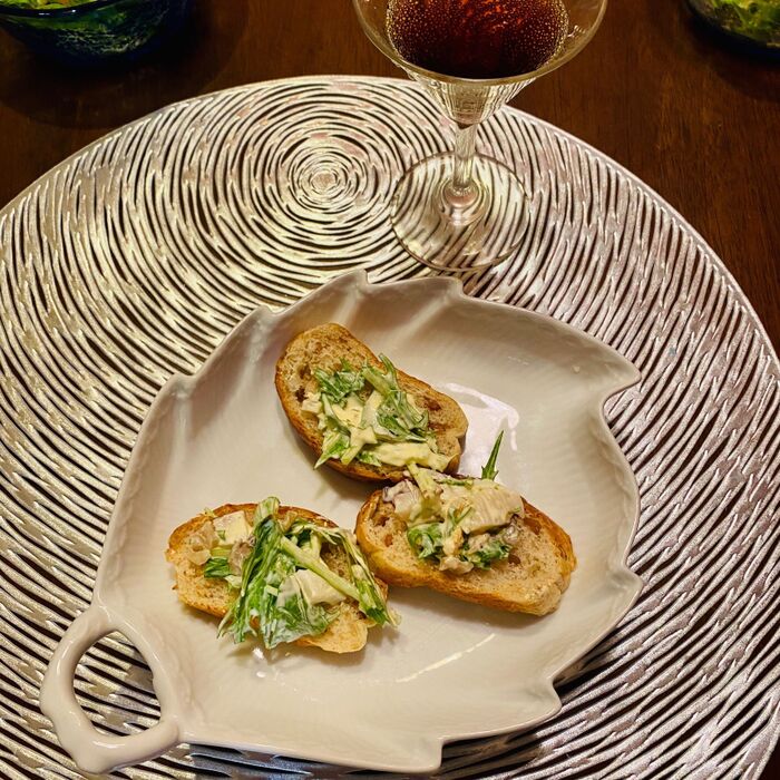 カリッと焼いたパンに乗せて、カナッペ風に仕上げました。