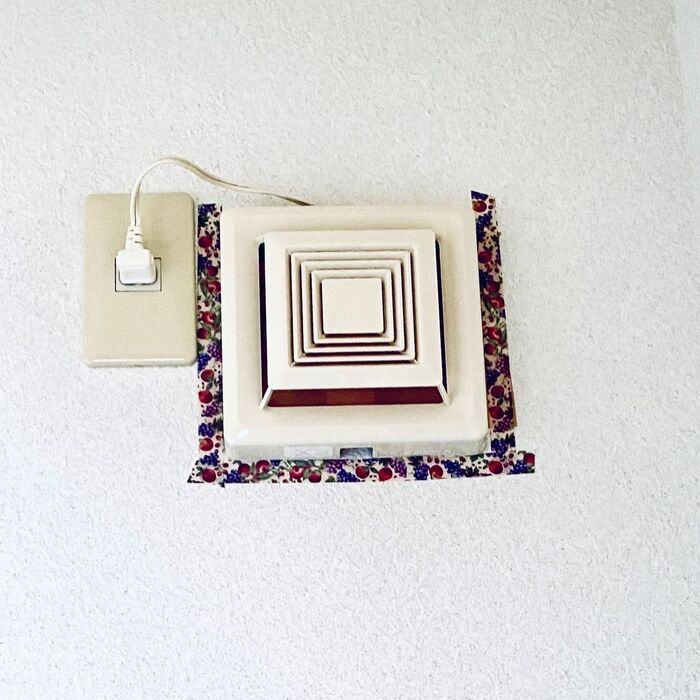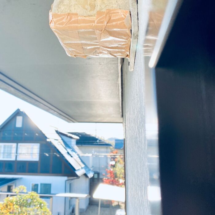 外側の排気口の隙間もガムテープで隙間なく覆います。