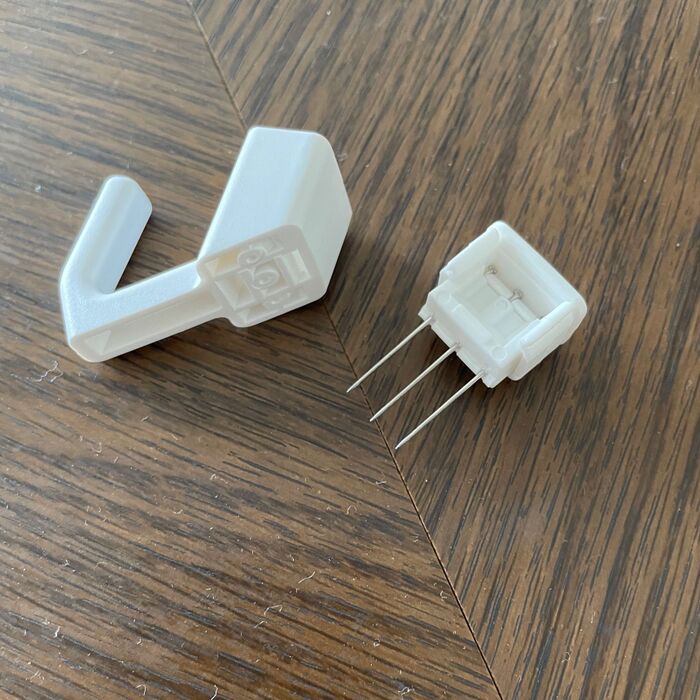 そこで、細いピンで固定するフックをセリアで買ってきました。