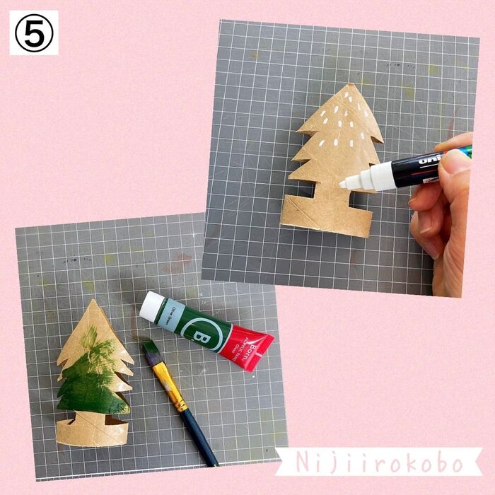 ペンで模様をつけたり、シールを貼ったり、絵具を塗ったりして、オリジナルツリーを作ってみて下さいね。