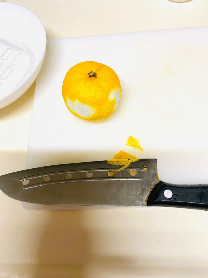 ⑧柚子をサッと洗い、へぎ柚子を作ります。