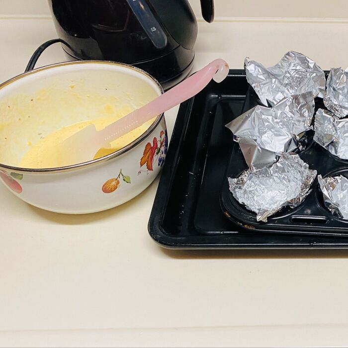 ⑧予め180度で温めておいたオーブンで、18分ぐらい焼きます。