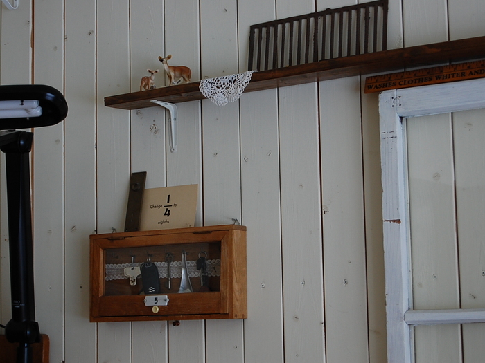 左側にあるキーラックは、取り壊しされた旦那の職場にあった古いキーラックです。
