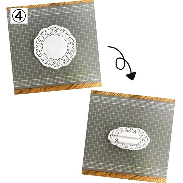 ④ 小さい方のレースペーパーを蛇腹折りする。