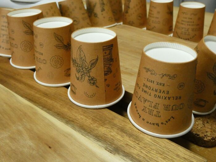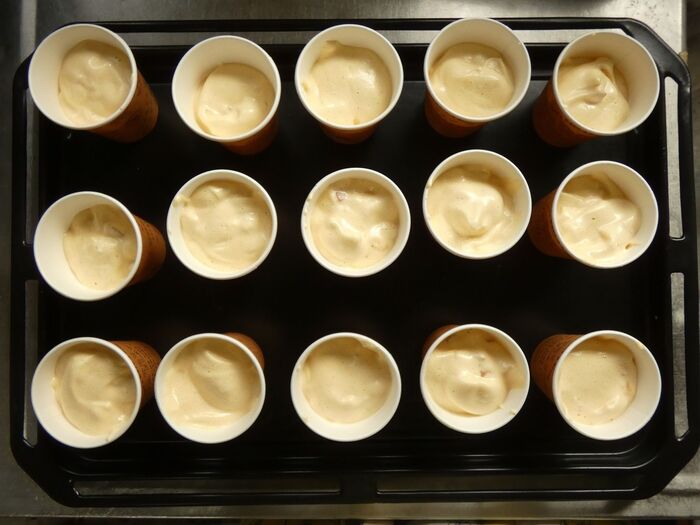 紙コップに流し入れ2~3回軽く落として空気抜きをしたら、170℃で17~20分焼きます。