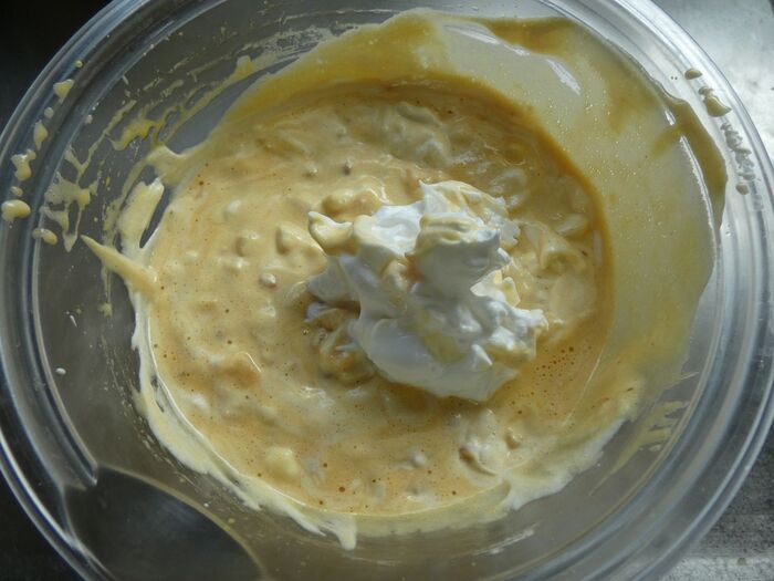メレンゲの1/3量を混ぜ合わせたら、残りの卵白も混ぜ合わせます。