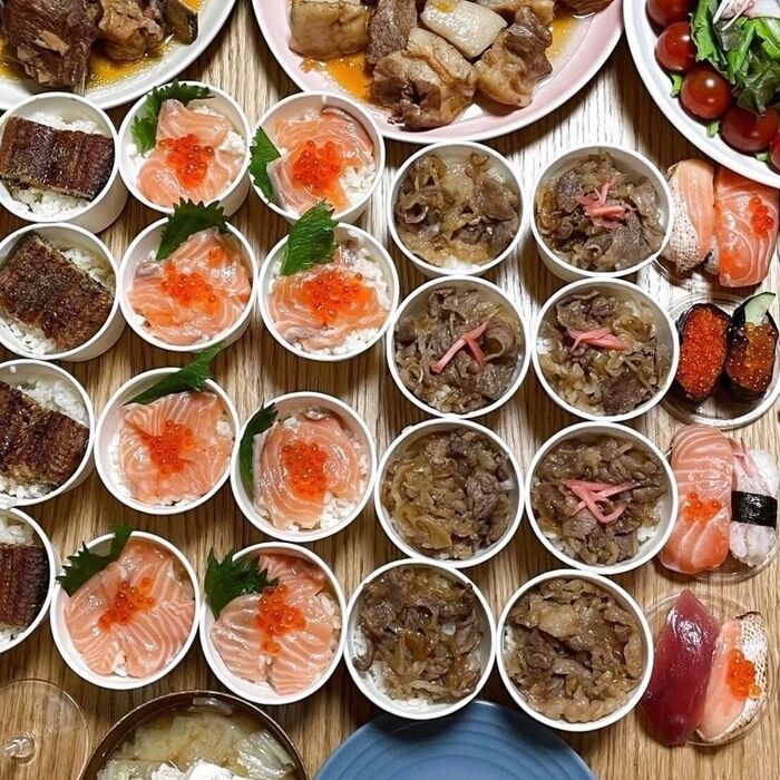 小カップを使うので、実際そんなに材料は使わないけど、いろんな種類の丼を楽しめて、とても喜ばれると思います。
