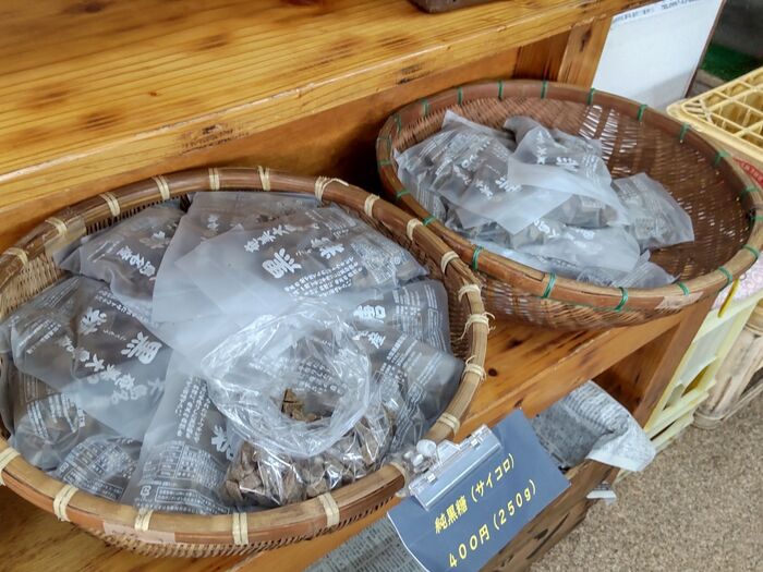店頭でしか購入できず、すぐに売り切れることもしばしばらしく、純黒糖 (サイコロ)を無事ゲット!黒糖好きの我が家!これは、買ってお味見しないと!おまけで、数個お味見用のこちらと同じ黒糖をくださいました・・・