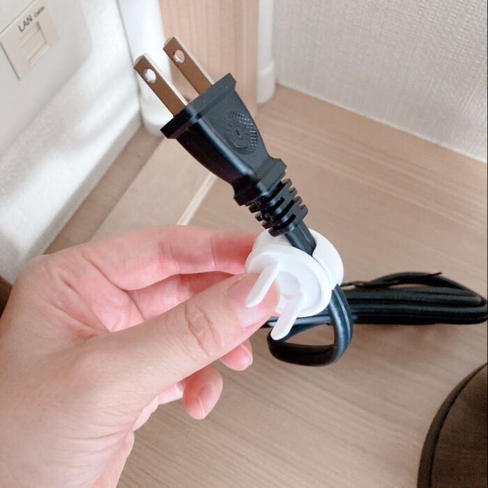 コンセントを抜いたときにプラグの代わりにコンセントに差し込めば、プラグが宙に浮いた状態で固定できます!