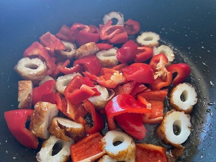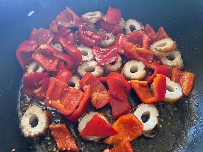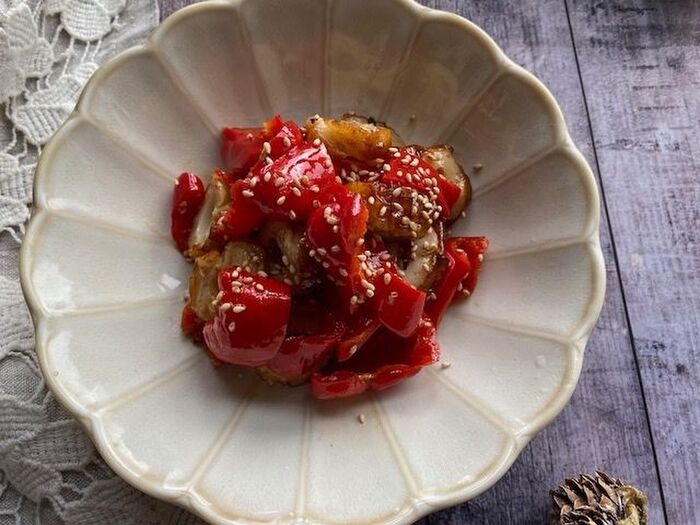 ★緑ピーマンでもおいしくできますが色落ちしてしまうので