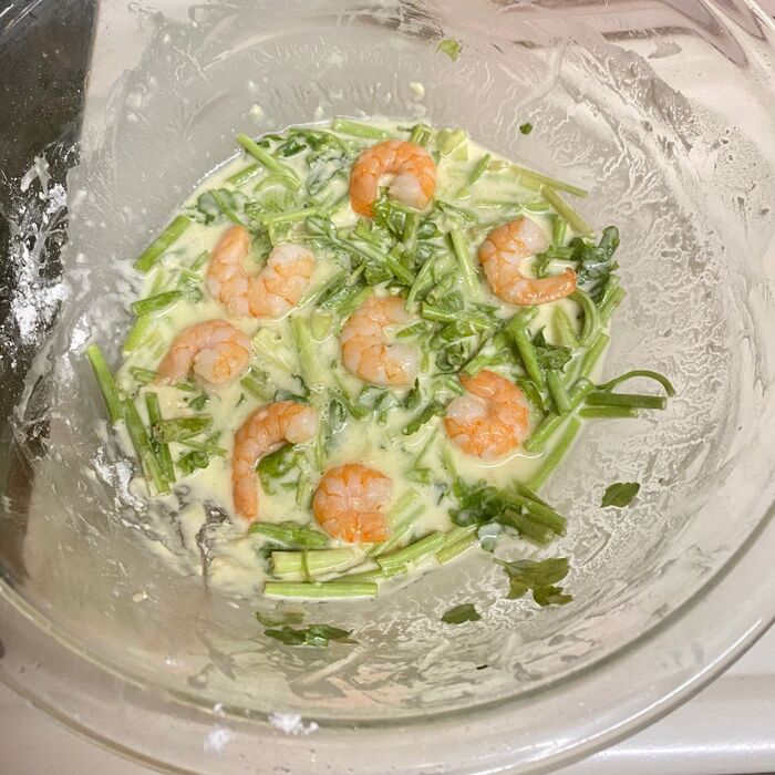 もし、エビに背腸や皮がついていたら取り除いてくださいね。