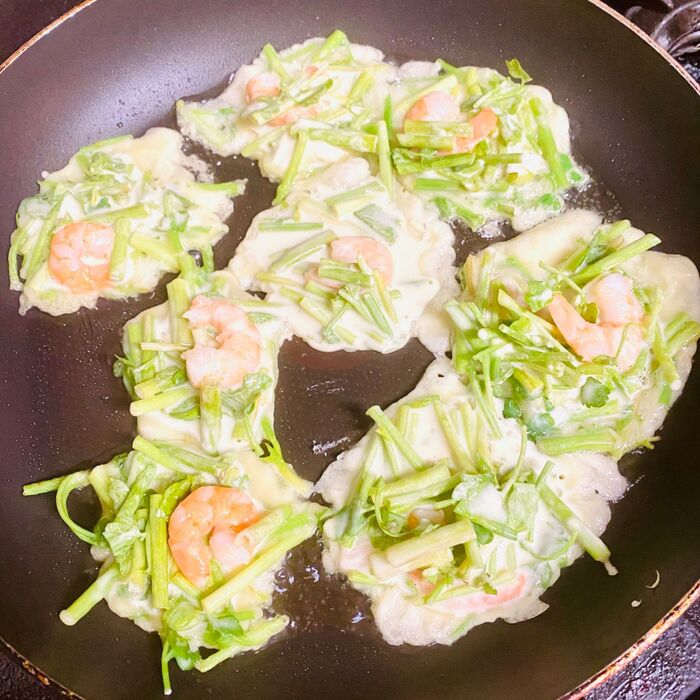 我が家では、健康のことを考えて、油は控えめで揚げています。