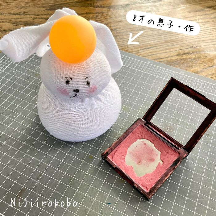 お好みの色柄靴下で作ると一年中楽しめるデザインに変身!(もちろん頭にピンポン玉を乗せる必要もありません。笑)