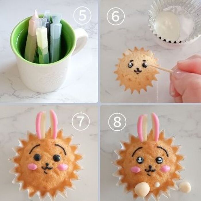 難しそうなキャラクターカップケーキも、たまごボーロやナッツ類を使うと簡単に可愛く仕上がります。