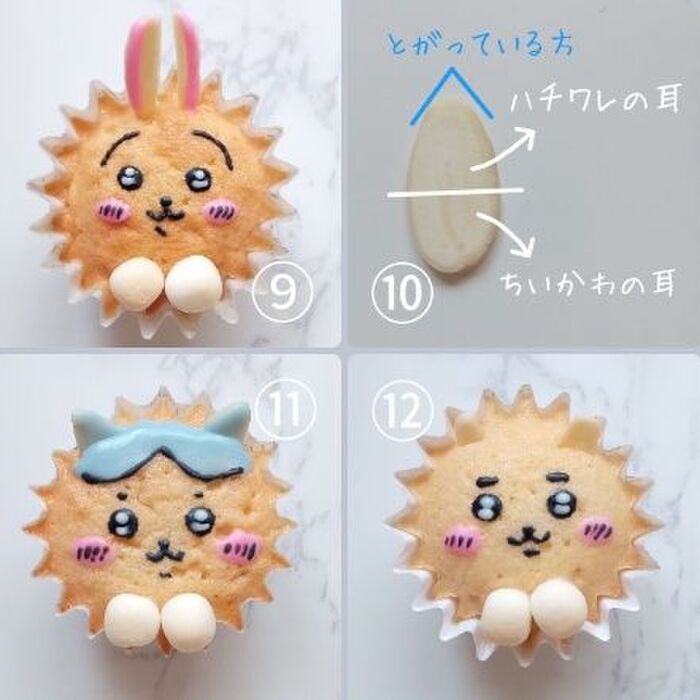 《ちいかわ》の耳は、アーモンドがとがってない方がでるようにさし込んで下さい。