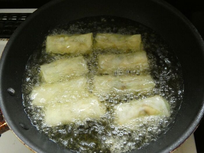 火の通り具合を気にしなくていいので、揚げるときは春巻きの皮がきつね色になればOK。