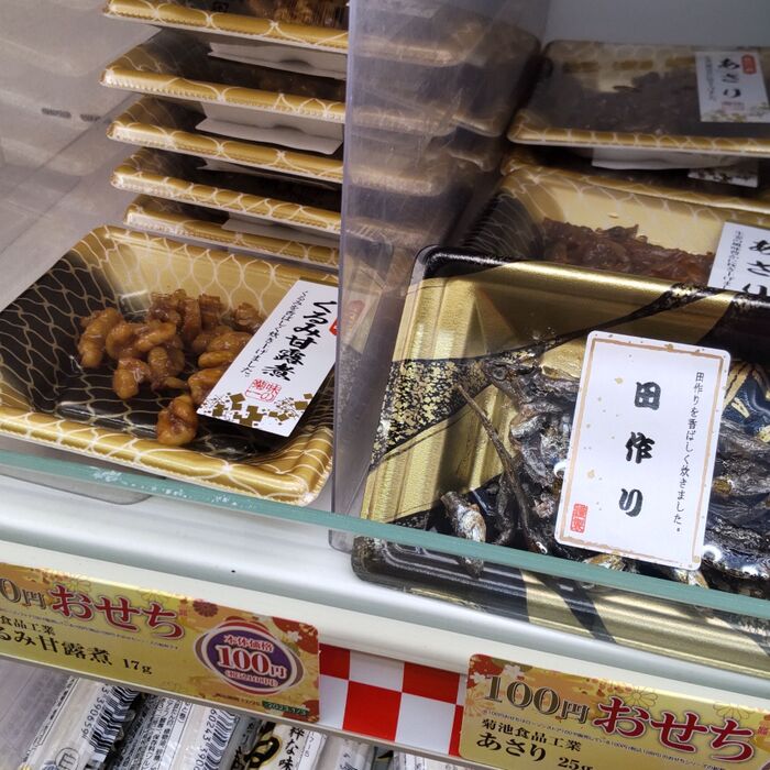 「ローソンストア100」の100円おせちは、たくさん種類があって選ぶのも楽しい。