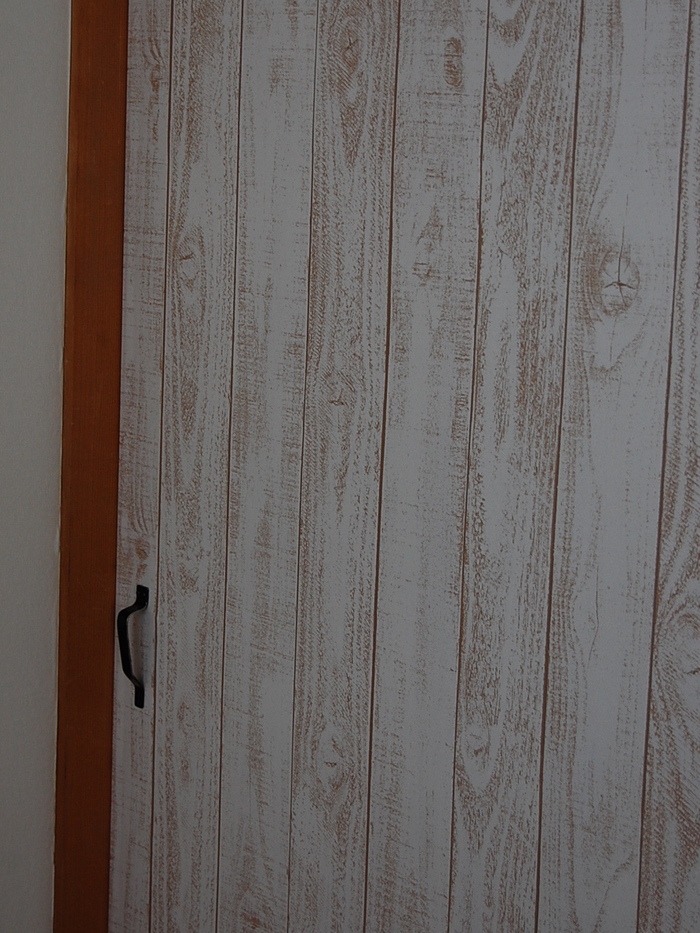 和風のクロスの上からホワイトのシンプルなクロスを貼ってます。