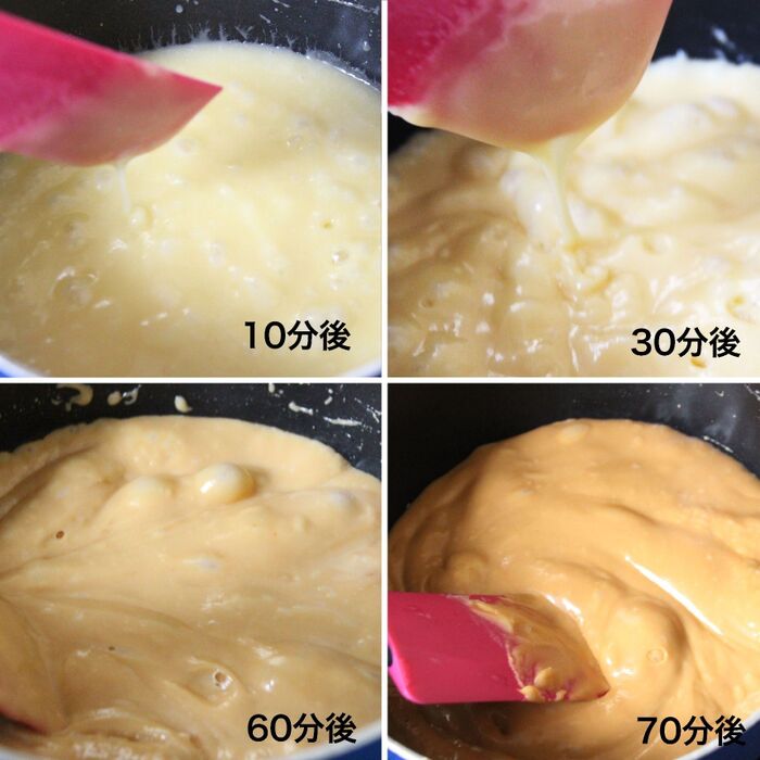 我が家はまめに混ぜすぎて色がつきにくかったのと、