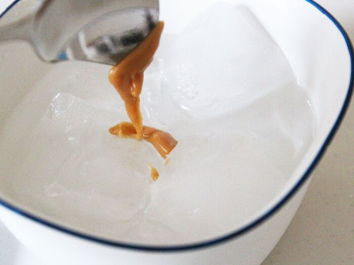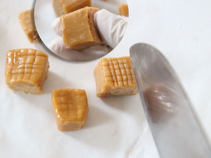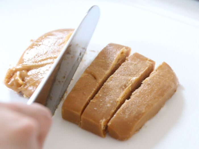 (包丁に都度お湯をかけ、あたためてから切ると切りやすいです)