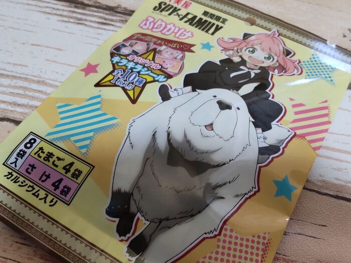 こちらも、先ほどご紹介した、ふりかけと同じで 「SPY×FAMILY」オリジナルキラキラシール全10種類のうち、1枚が入っています!おまけ付ってお子様にはたまらなく嬉しい♪
