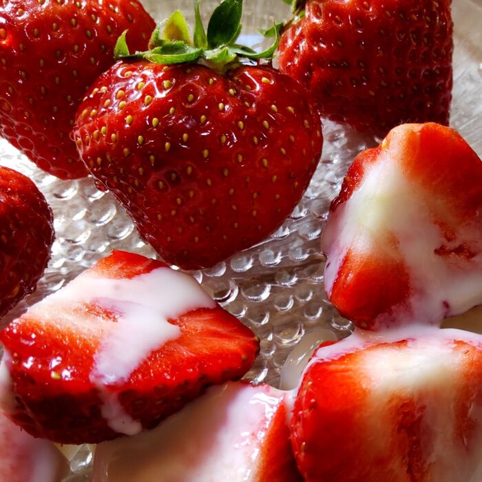 あまおう苺に練乳をかけていただきながら、福岡あまおう苺のシュークリーム&ツインシューを食べちゃうって、ワクワクする食べ方だと思いませんか?