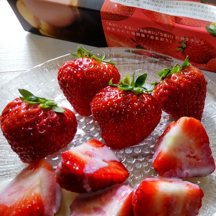 「あかい」「まるい」「おおきい」「うまい」の頭文字を合わせて命名された福岡産の「あまおう」