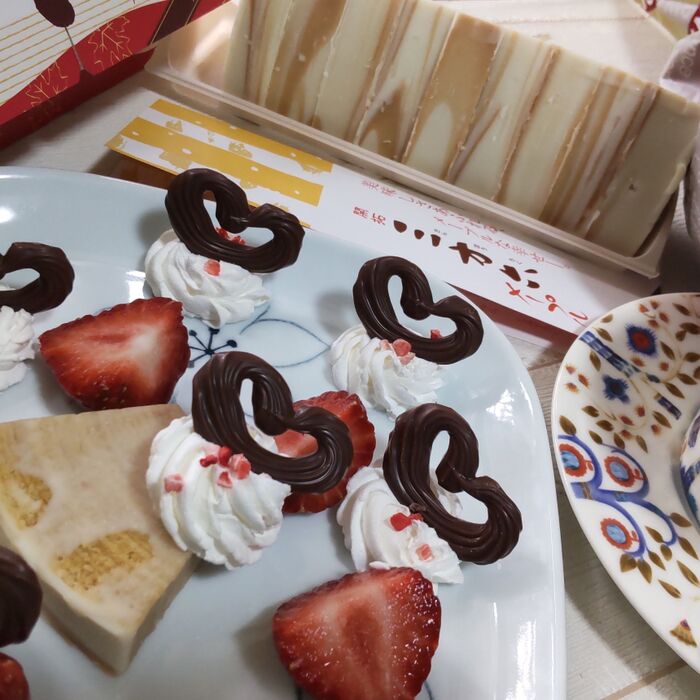 バレンタイン用のチョコ会場に、三方六がっ!