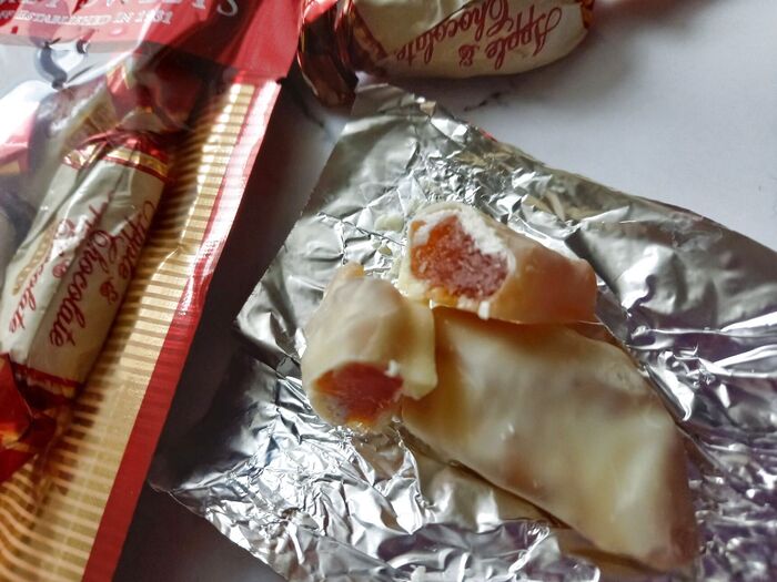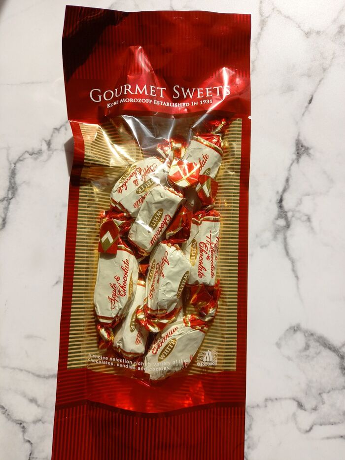 包み紙を開けると、ホワイトチョコレートにリンゴが包まれています♪