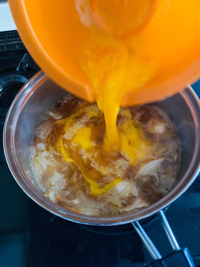 溶き卵も加えるので味が薄くなってしまうので、ご飯にかけたときに