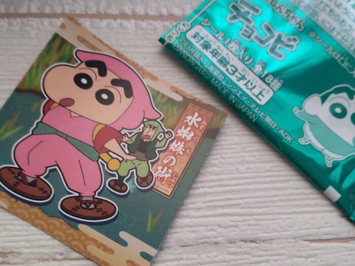 シールラインナップは全20種で、すべてチョコビのオリジナル描き起こしイラストを使用したデザインだそう。1枚、このようなシールが入っていました。こちらのおまけは、2022年の、忍者シリーズのイラストの絵柄です→そのときしか、手に入らないよ!