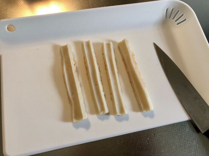 ちくわを縦に4等分にカットします。