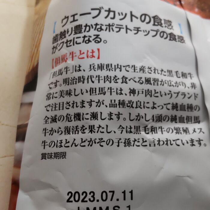 但馬牛肉のうまみがたっぷり入ったポテトチップとあります。皆大好きポテトチップに「但馬牛」が入ったそうな~!