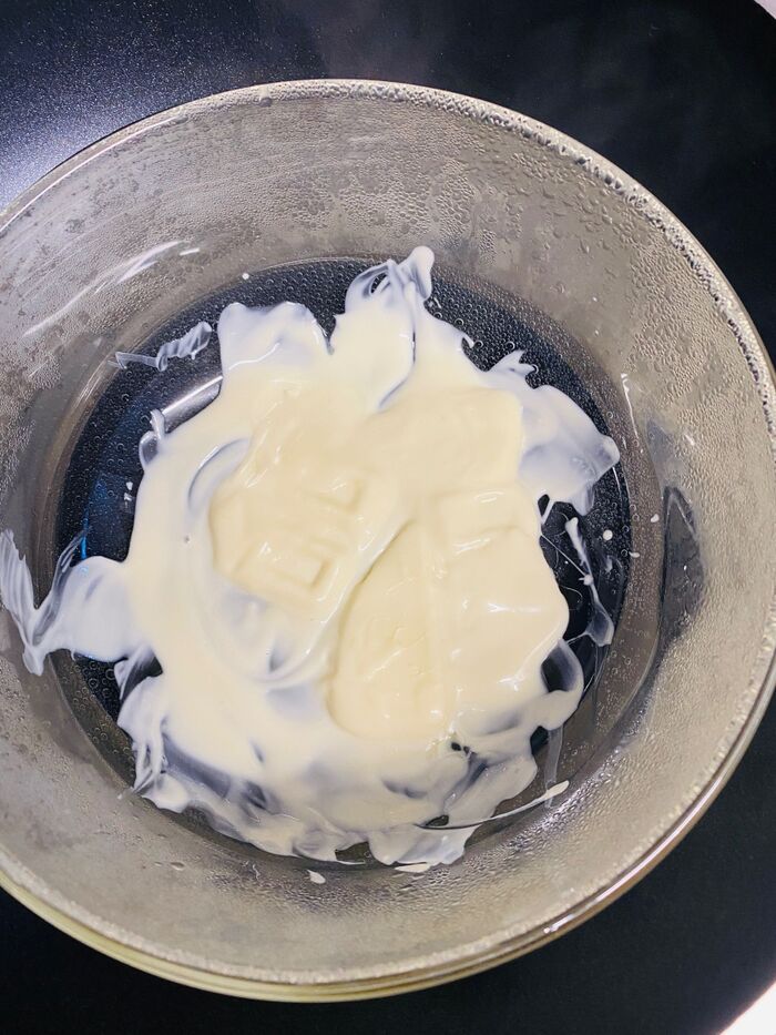 リサイクル箱に、アルミシートを敷き③を入れます。