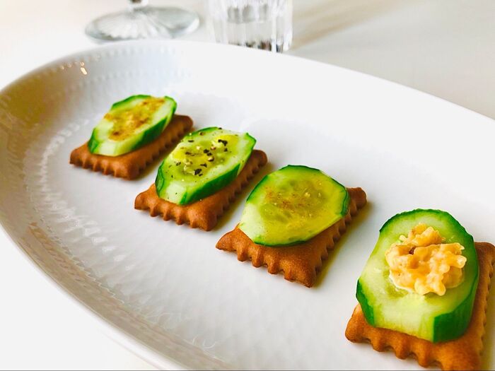 ①薄く斜め切りにしたきゅうりを軽く塩揉みして、数分放置したらキッチンペーパーで余分な水分を拭き取ります。