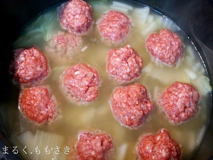 肉種を乗せた後は、煮崩れしないように白菜を置く時に