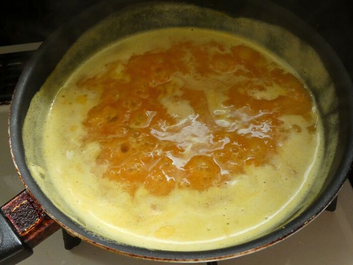 木べらで混ぜた時に鍋の底がしっかり見えるくらいになったら火を止めます。
