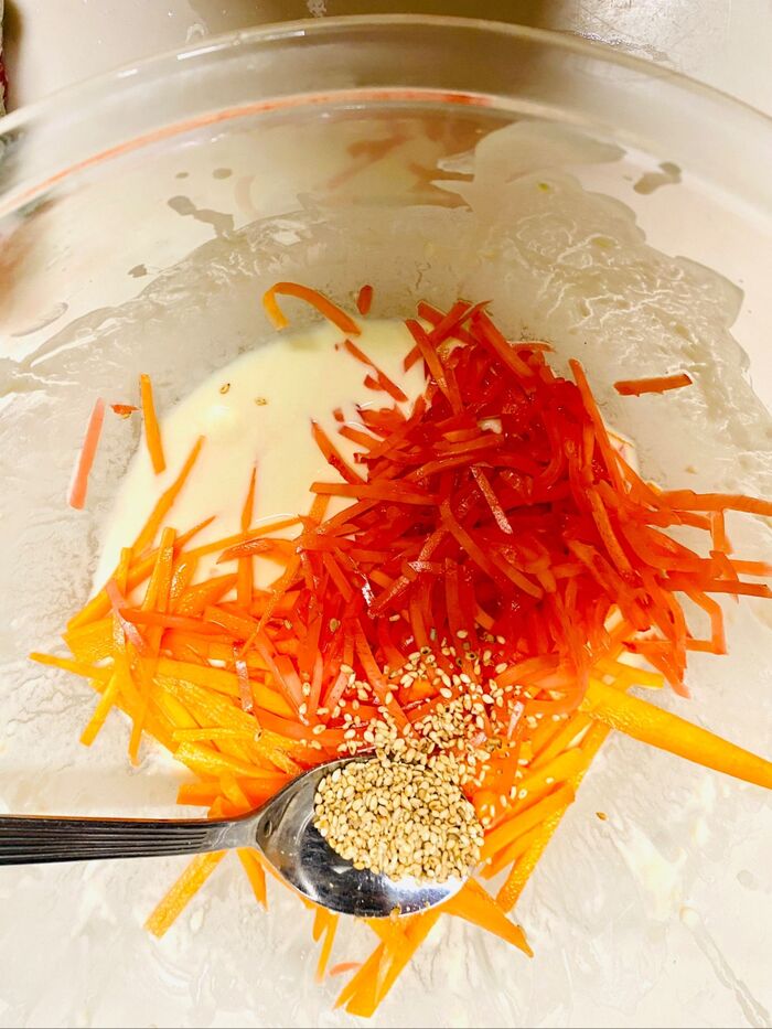 せん切りにした人参、よく水気を切った紅生姜、