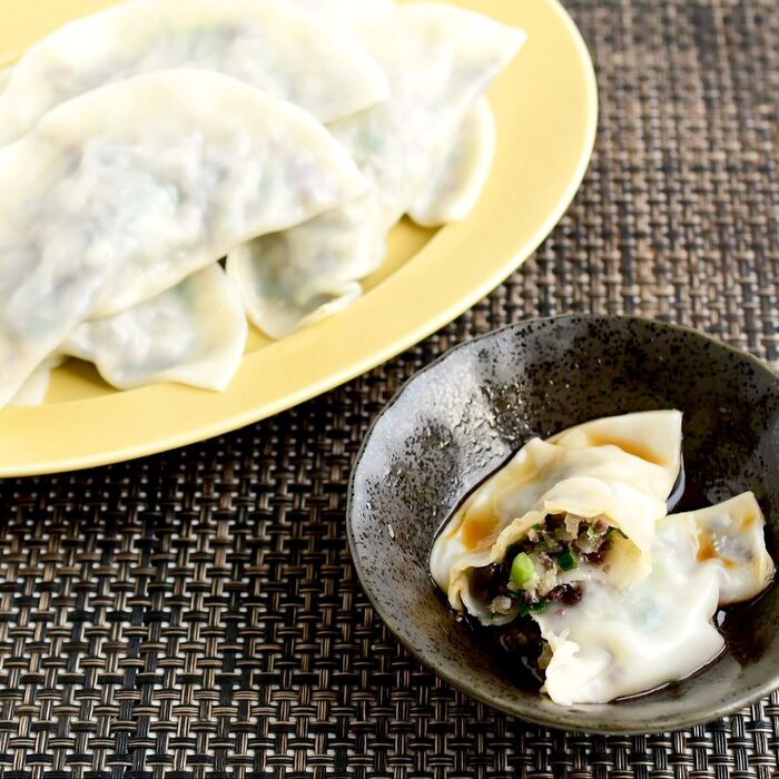 つるんとした口当たりの水餃子。たっぷりと入れた雑穀で、ヘルシーなのに満足感のある一品です。